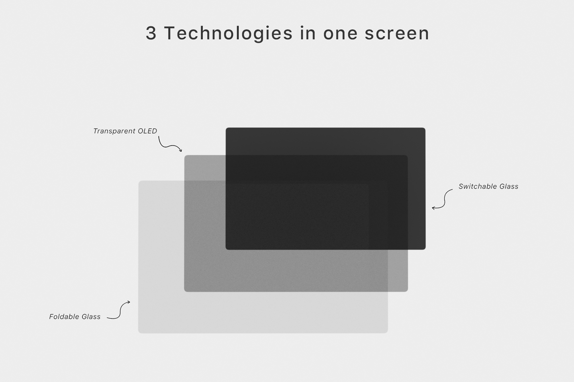 Smart Screen is a combination of transparent OLED and Switchable Glass. This allow the screen to be transparent for AR content, and totally opaque for any other content like movies or games. The opacity gives a better contrast and an experience as close as possible to an iPad.